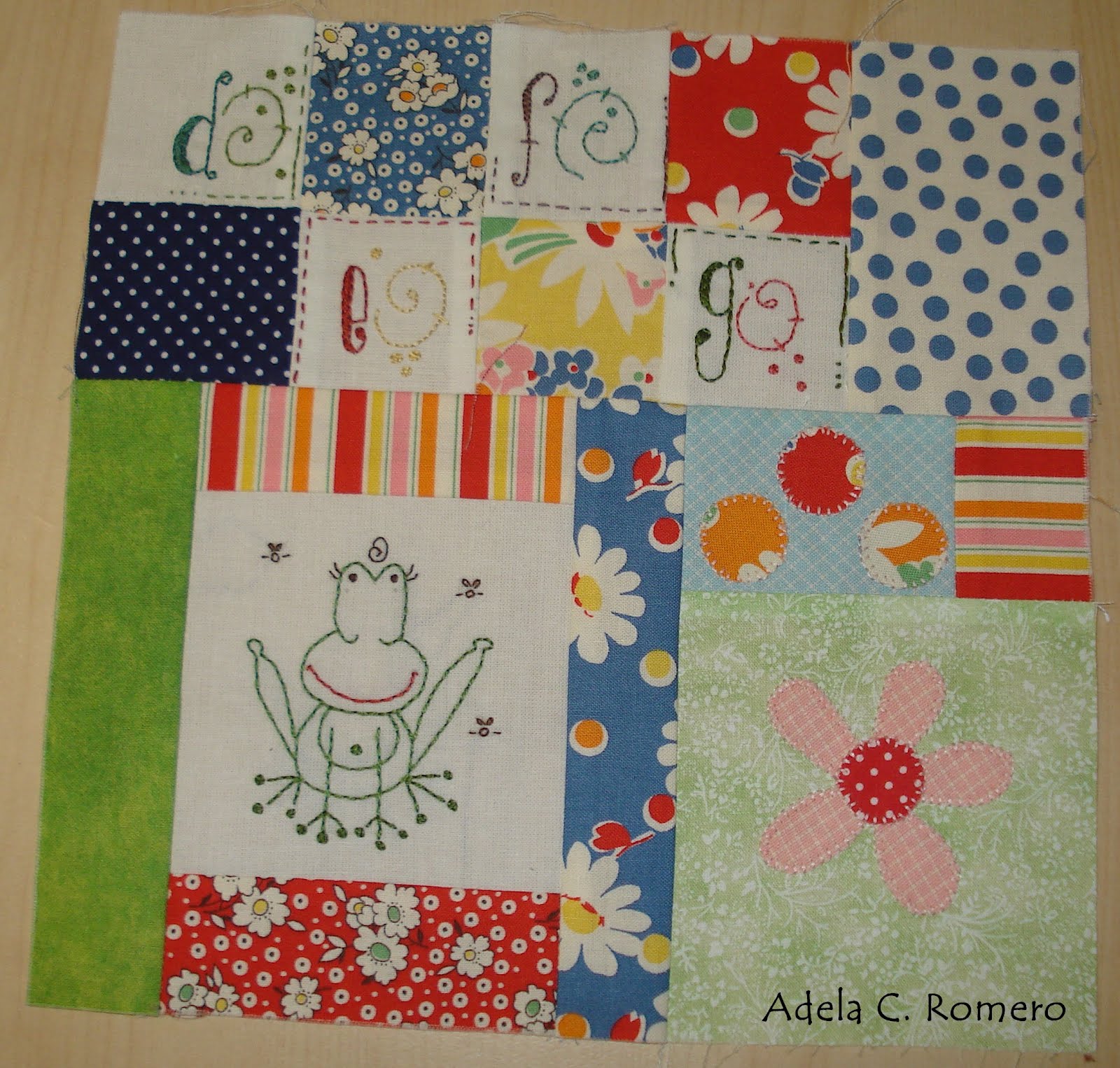 Tenía que hacer primero el bloque y después dibujar el animalito y las letras correspondientes en el bloque.... y a bordar.